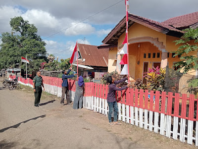 Dompu-Cakrawalamerdekaonline, Dalam rangka menyambut Peringatan Hari Kemerdekaan RI ke-79 di wilayah binaannya, Koramil 1614-01/Dompu melalui Babinsa Karamabura Serda Aksar, menghimbau dan mengajak seluruh warga untuk melakukan pemasangan umbul-umbul dan Bendera Merah Putih di wilayah binaannya, Desa Karamabura Kecamatan Dompu Kabupaten Dompu, Rabu (7/8/2024).